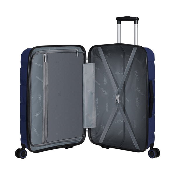 One oversized packing space divides into two distinct, large compartments for a customized packing experience.
