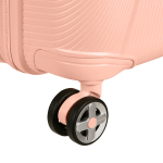 Wheels have a shock-absorbing, suspension design for smooth and quiet rolling.