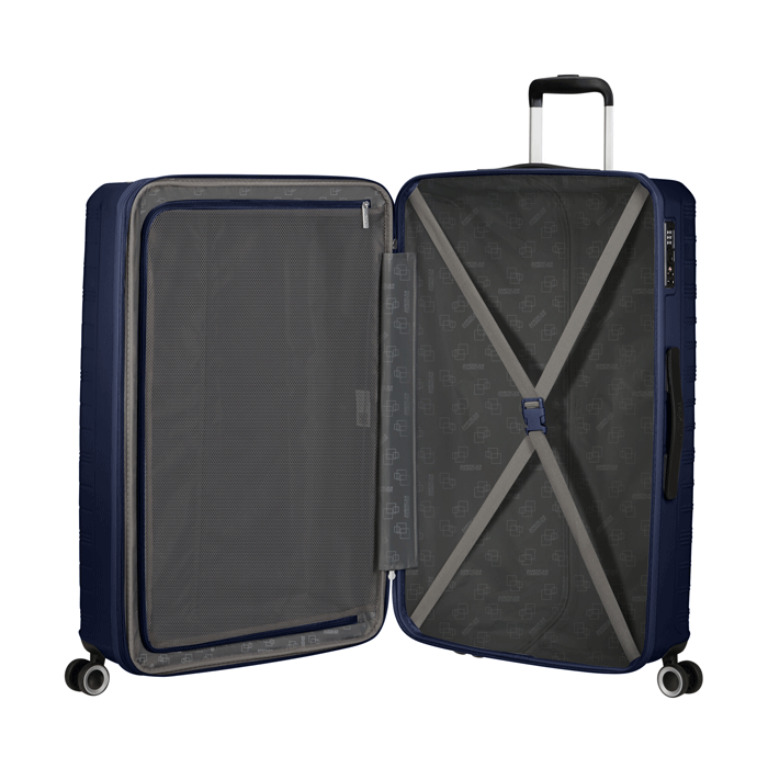 One oversized packing space divides into two distinct, large compartments for a customized packing experience.