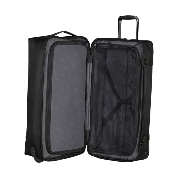 Oversized storage divides into two large, separate compartments providing a personalized storage experience.