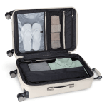 Eight 360-degree spinner wheels allow suitcase to move easily in all directions
