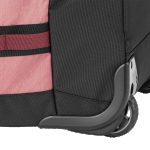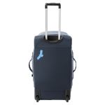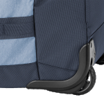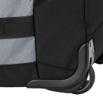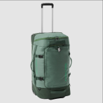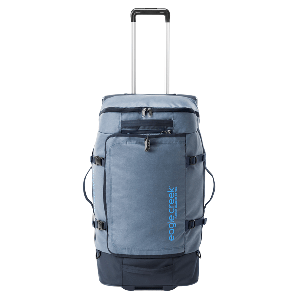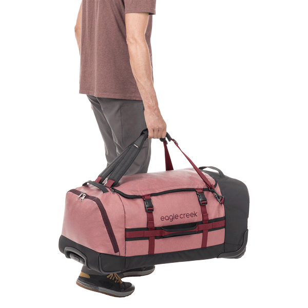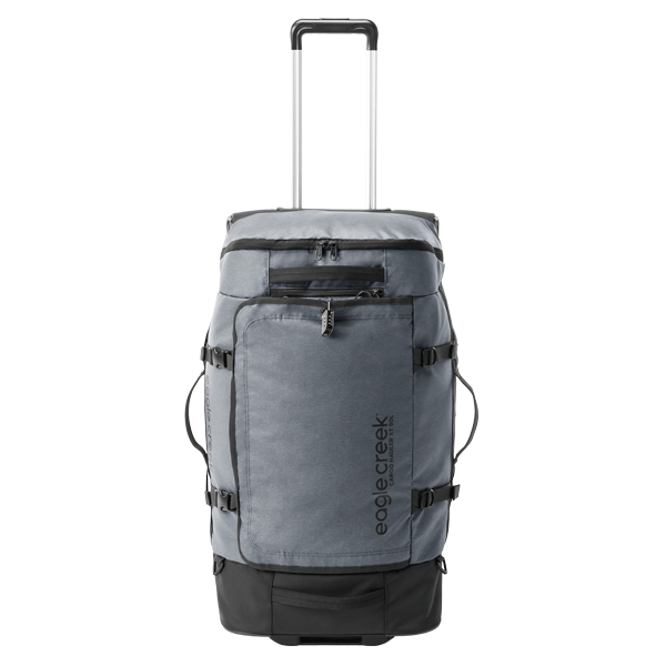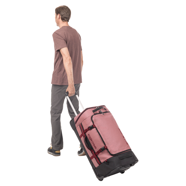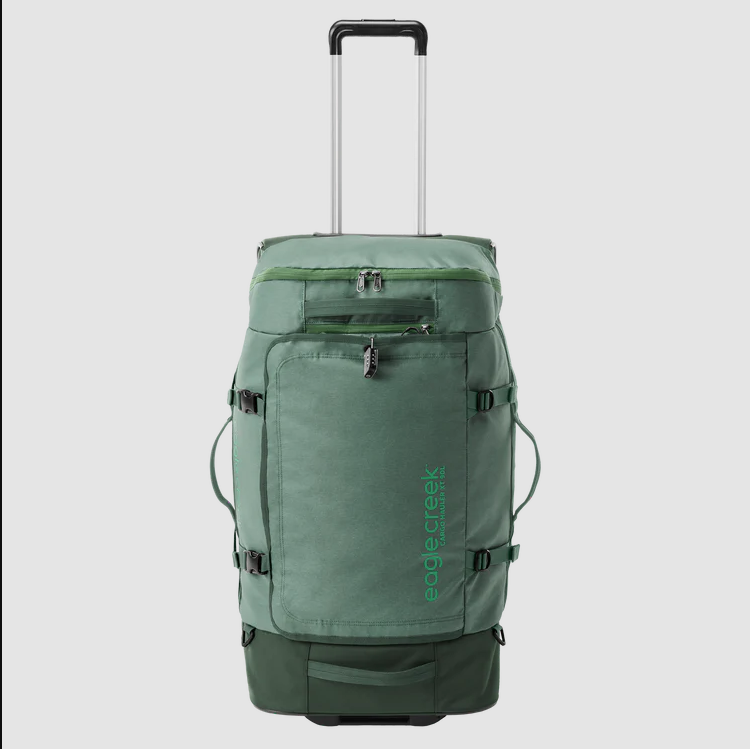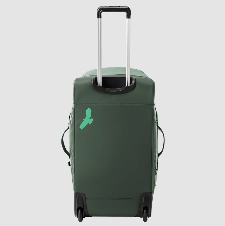 holds. Its telescoping handle and heavy-duty wheels also let it race across airport terminals. Recycled
