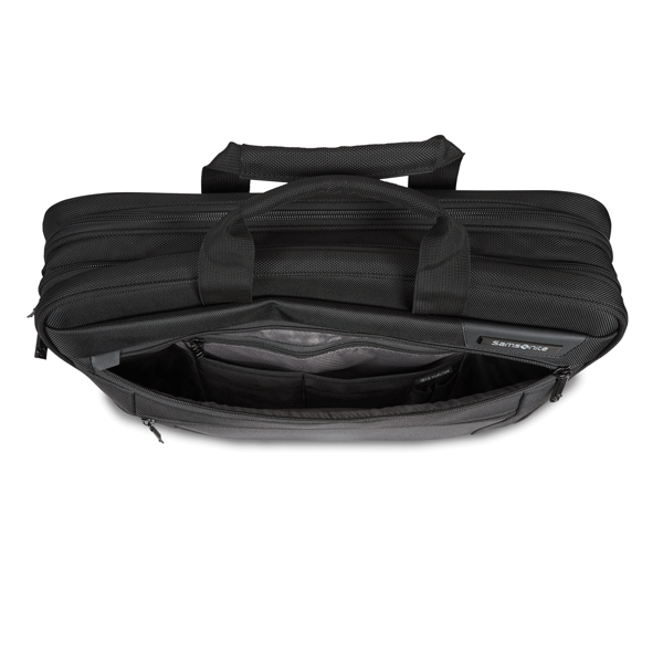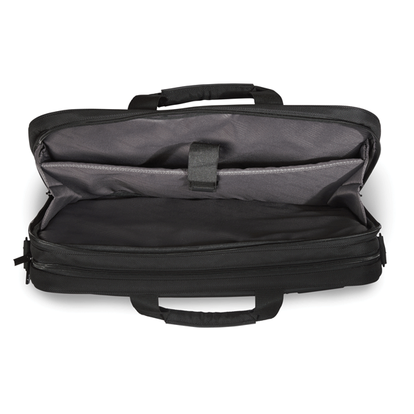 Padded laptop & tablet pockets for extra security. Fits most 17″ laptops.