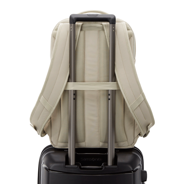 Padded air-mesh back panel for comfort.