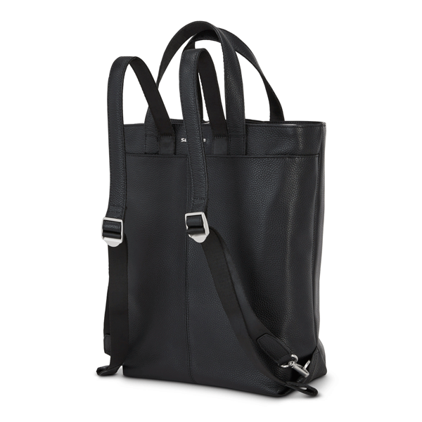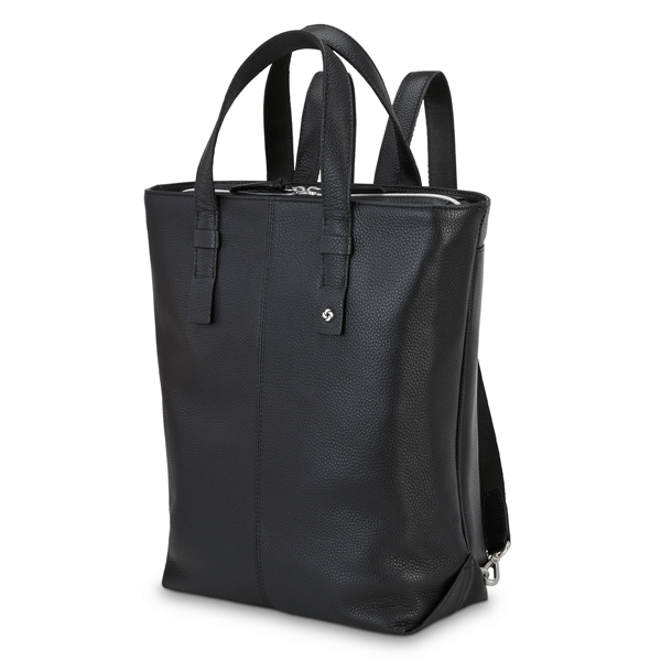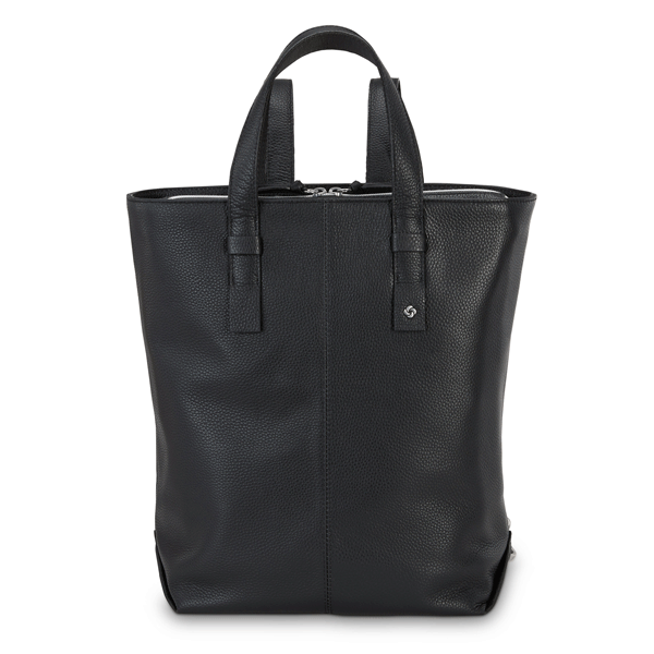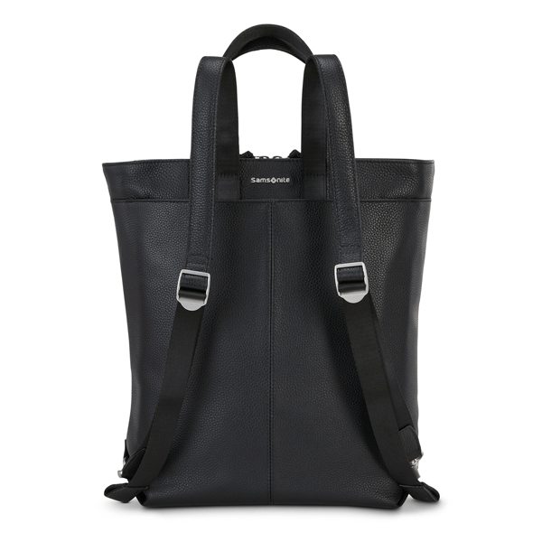 Hidden backpack straps tuck away when not in use.