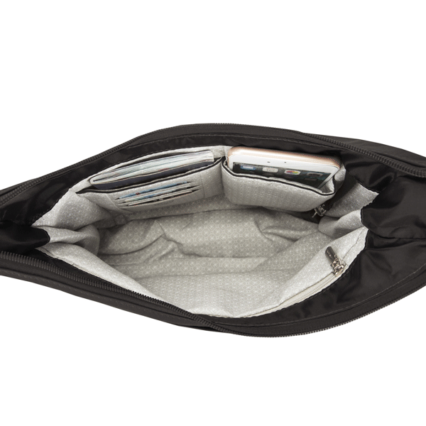 Roomy main compartment has an organization panel, zippered pocket and slip pocket
