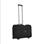 Convenient, wheeled garment carrier lays flat for easy packing and keeps clothes wrinkle-free